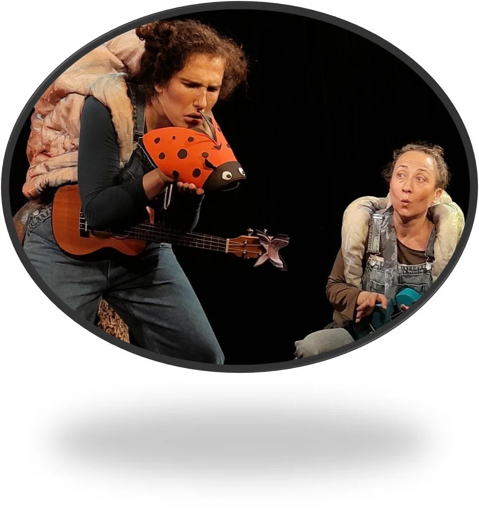 Spectacle joué, chanté avec des instruments en direct par 2 comédiennes musiciennes.